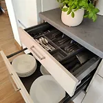 يتوفر المطبخ الصغير، بالإضافة إلى منطقة لتناول الطعام في الهواء الطلق لتناول الطعام.